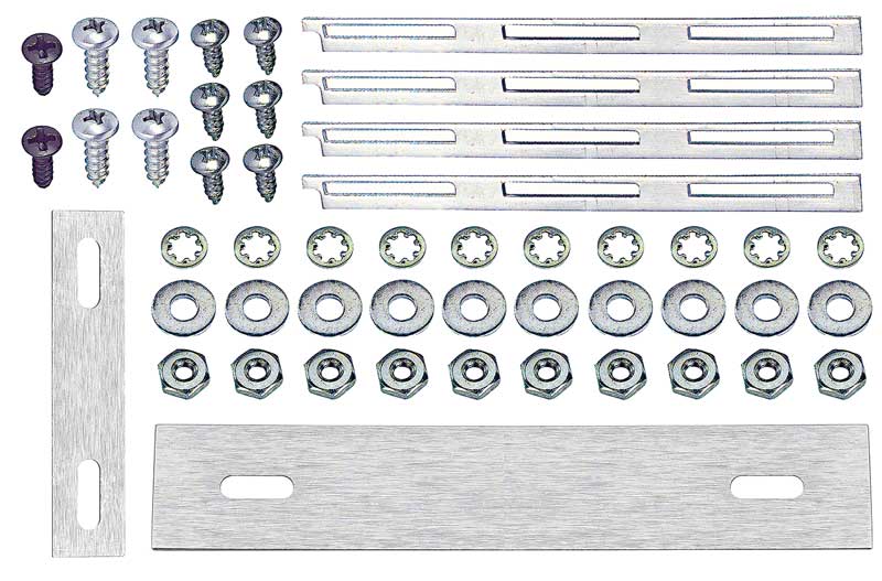 This console gauge assembly screw kit contains enough screws and washers to assemble or reassemble a set of reproduction or original console gauges into the housing for 1968-69 Camaro with a floor console. Also includes 4 aluminum clips to attach the gauge bezels to the housing and steel 2 brackets to mount the gauge assembly to the console. Although not cosmetically correct in appearance, this kit will function as original.