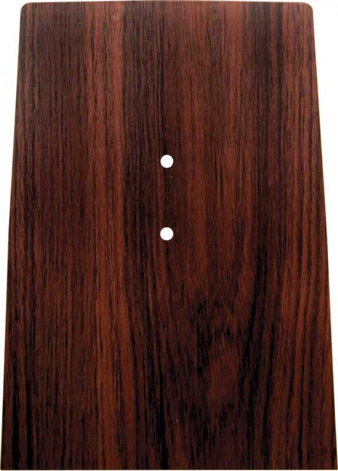 Superb reproduction of the original console forward plate designed for use on 1969 Camaro models without console gauges. Manufactured in quality die-cast zinc featuring original style Cherrywood woodgrain pattern. Each plate features original style mounting studs that install in original GM or OER reproduction console assemblies. Includes correct mounting holes for Bow Tie emblem available separately. Refer to part number # 3918614 for emblem.