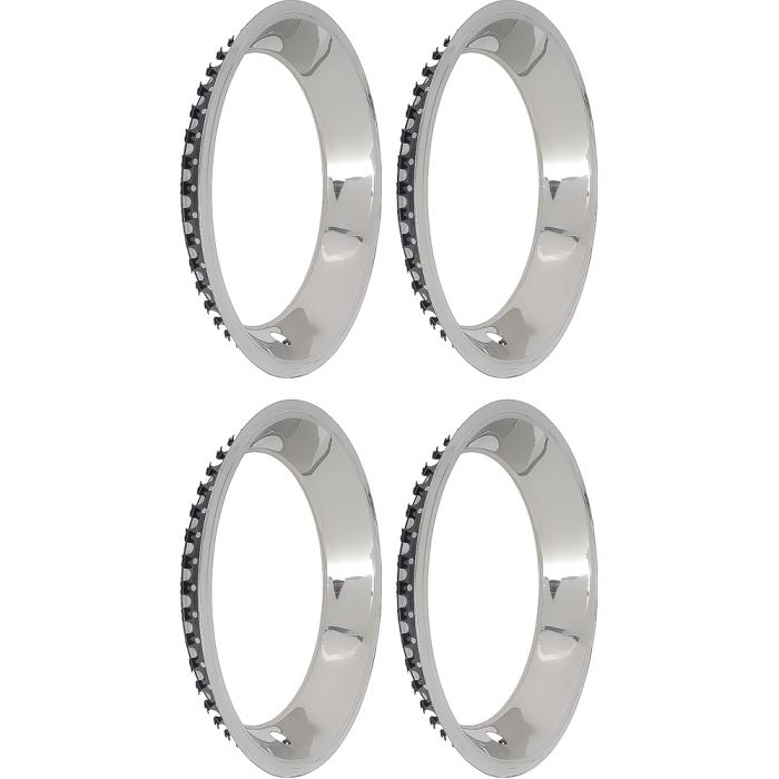 Quality reproduction Rally wheel trim ring set for 15x7 wheels. Manufactured in quality stainless steel for a long lasting quality appearance. Get the same OEM look with this superb reproduction set. Fits 15" x 7" Reproduction Rally Wheels Only. Sold as a set of four.