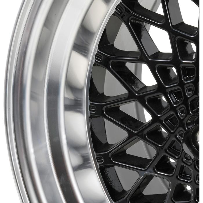 Each cast aluminum wheel features a machine-finished outer lip and black gloss spokes as original.