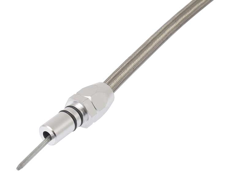 Each dipstick comes complete with braided stainless outer housing and heat resistant E-Z to read flexible inner dipstick measuring cable. Inner cable is molded with appropriate trans fluid levels marked.