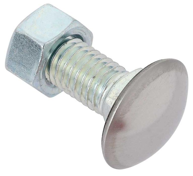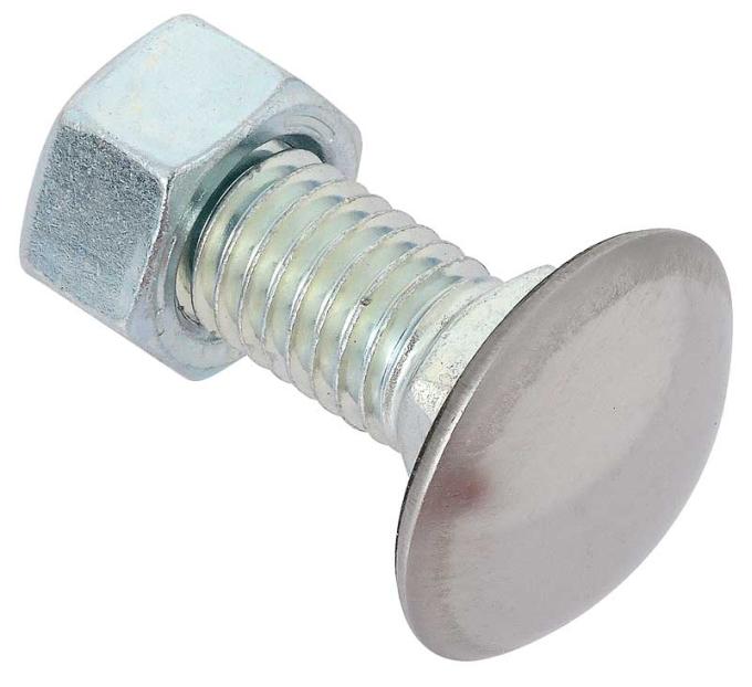 Replacement style stainless steel capped bumper bolt and nut designed for use on many GM vehicles. Each bolt measures 1/2"-13 x 1-1/2"; 1-1/8" head diameter and comes complete with attaching nut. Can be used for a wide variety of applications. Sold individually. Use as required.