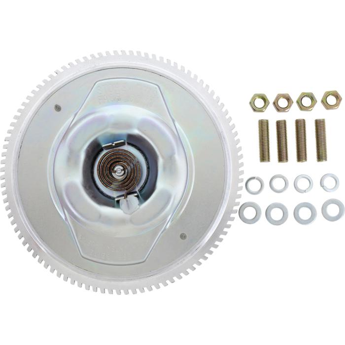 Reproduction of the application specific, factory-style thermal fan clutch for various 1960-70 Chevrolet and other GM models. Each fan clutch is designed to replicate the original in design, appearance, and fit. Includes mounting hardware. Features an Eaton style coil type thermostatic element. Measures 2.5" from mounting plate to edge of clutch, 1.75" outer hole to hole on water pump. 3" outer hole to outer hole for fan, and 6" diameter. Original GM part number # 3916141.