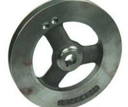 OER® reproduction of the original power steering pump pulley designed for use with for various 1960-75 Chevrolet models as listed. Manufactured from formed and machined steel with the correct key way fit design and finished in satin black. This is a single groove pulley with out markings for a 3/8" wide belt. Measures 5-3/4" o.d.