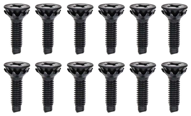Reproduction door hinge screw set for 1962-67 Chevy II and Nova and various other models. Manufactured to original specifications ensuring a proper fit. Each hinge required 6 screws, three on door and three on body. Also used on 1967 Camaro/Firebird lower door hinges, 3 screws per hinge. For 1962-67 Chevy II models, two sets required (24) per vehicle to replace both driver (LH) and passenger (RH) side upper and lower cast iron hinges. For 1967 Camaro or Firebird, one set will do the lower cast iron hinges on both sides.