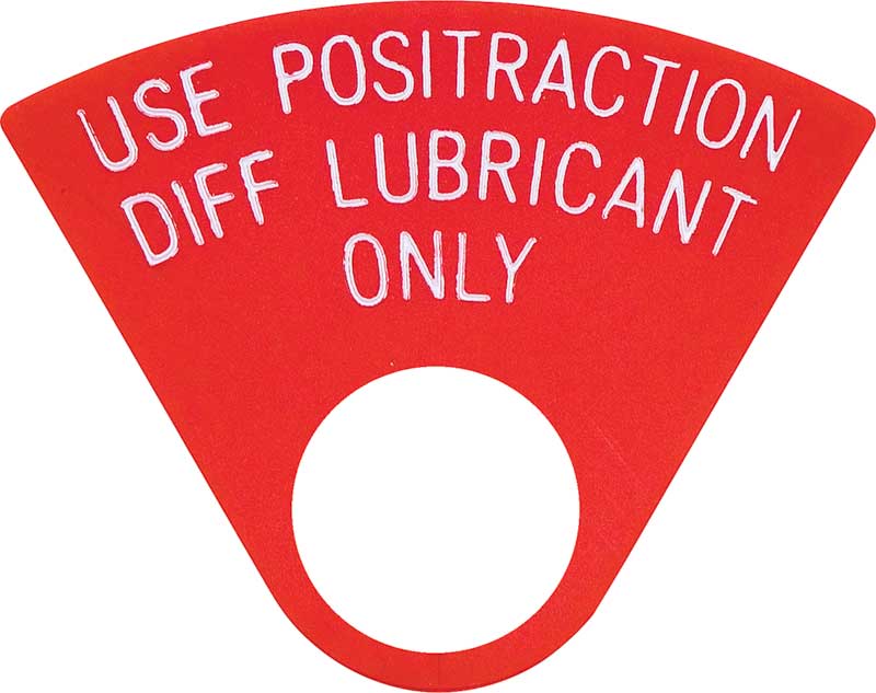 Reproduction of the original rear end positraction tag designed for use on various Buick, Chevrolet, Oldsmobile, and Pontiac models with 12 bolt positraction differentials. Each tag is manufactured in molded plastic to GM specifications in embossed lettering and features the verbiage "USE POSITRACTION DIFF LUBRICANT ONLY" in the correct font for authenticity. The tag mounts with the fill plug. For use on various makes and models.