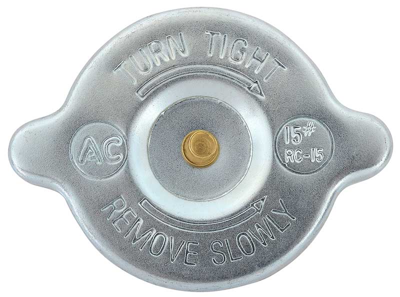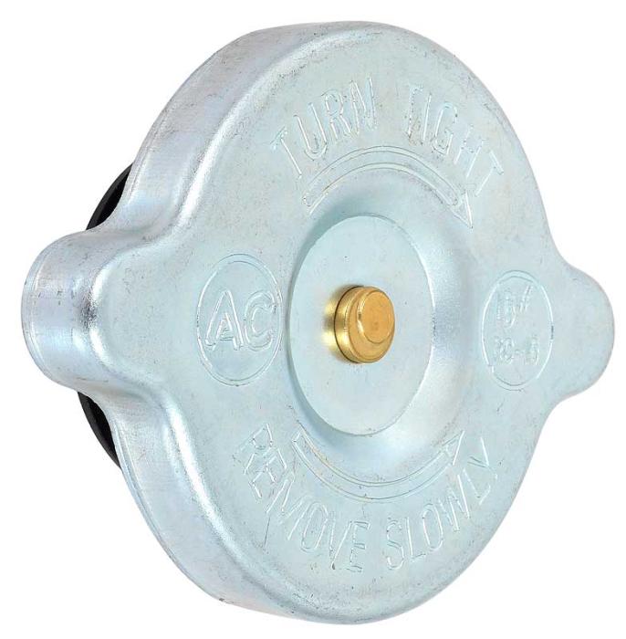 Authentic OER® reproduction radiator cap for the enthusiast who wants total originality. Each cap is manufactured to exact factory specifications including the correct verbiage "TURN TIGHT" "REMOVE SLOWLY" along with the AC logo and RC-15 stamping. Also features an accurate cosmetic appearance of the center rivet. The current GM service replacement and other reproduction caps on the market do not accurately represent the original cap. Officially Licensed by General Motors
