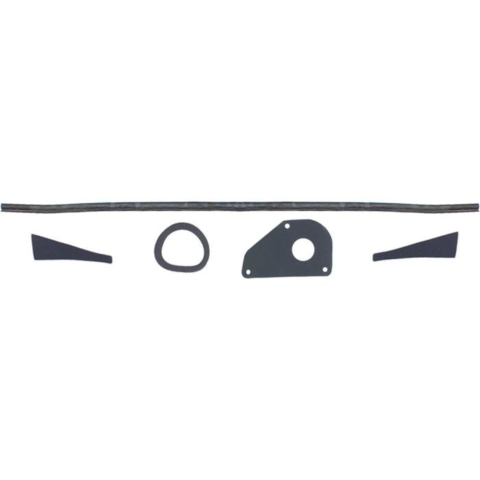 Reproduction of the original cowl firewall seals to replace the old or worn out originals on 1967-68 Camaro and Firebird models. Each seal is die-cut to exact dimensions and replaces the various gaskets on the outer firewall area. Includes all the major gaskets required to eliminate leaks through the firewall.