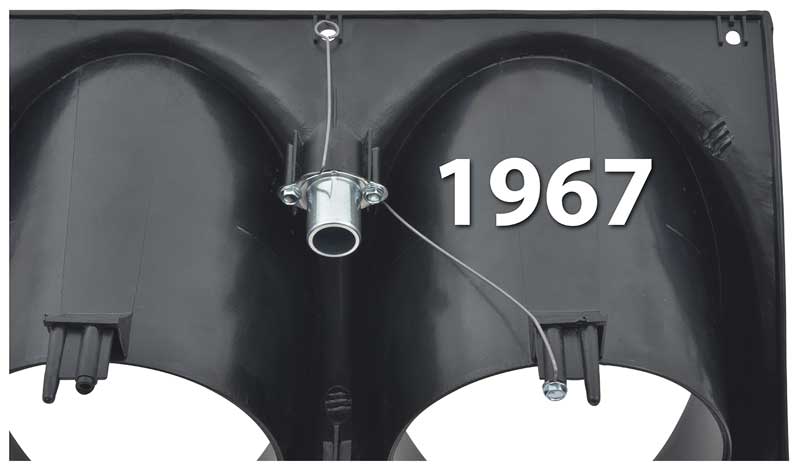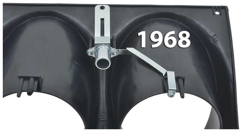 Headlamp hi-beam indicator bulb housing, red lens, ground strap and mounting screws for 1967-68 Camaro and Firebird models. Mounts on the upper portion of the rear section of the dash instrument carrier assembly. The ground strap is essential in grounding the hi-beam indicator light and gauge cluster assembly. Bulb and wiring sold separately. Includes instruction sheet for installation.