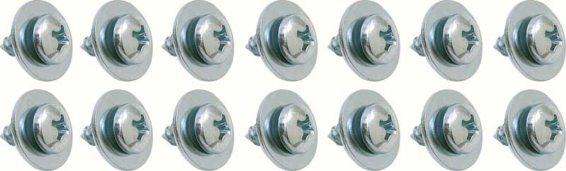 Reproduction of the original Phillips head screws designed for installing the rear convertible well rain gutter molding. The molding secures around the convertible well area to direct water runoff and keep the well liner dry. This 14-piece screw set is required for proper installation of the rain gutter. Refer to part number # 7678186 for the convertible rain gutter.