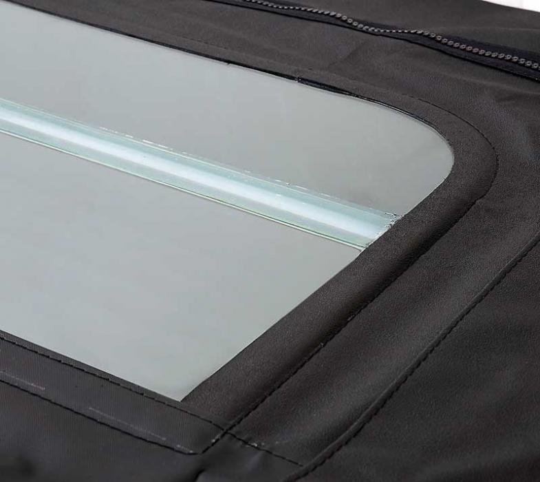 Available separately from top for easy replacement. Each folding glass window includes a silicone strip that runs vertically on the window allowing the window to fold in half when lowering into the well area. Includes the outer matching vinyl.