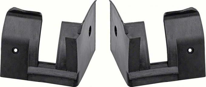 Reproduction of the original convertible top frame to body seals designed for use on 1967-1969 Camaro and Firebird models. These molded rubber seals with a stamped steel spine replicate the factory design and provide a proper fit. Their purpose is to prevent water drainage into the rear of the body and trunk area, ensuring protection from leaks and moisture damage. Each set includes both the RH and LH seals, sold in pairs.