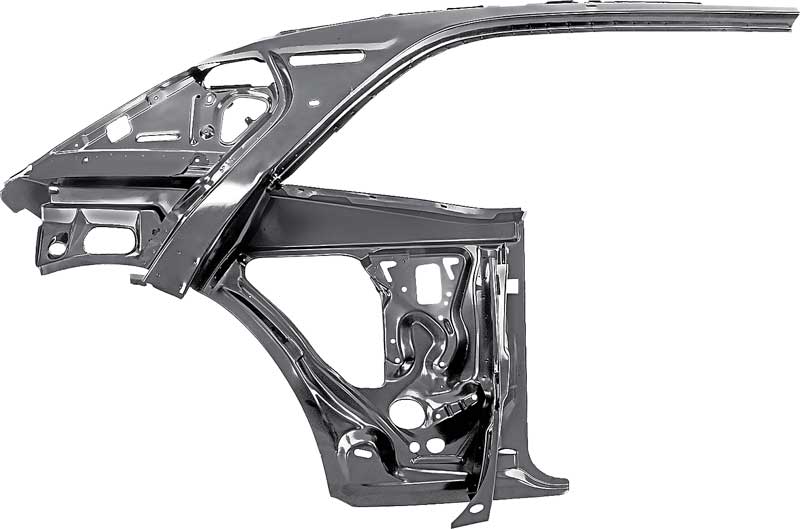 Reproduction inner door and quarter frame assembly for 1967-69 Camaro and Firebird models. This frame assembly is manufactured in quality stamped steel to original factory dimensions and includes the inner quarter bracing. Features correct gauge sheet metal and contours. Each panel is finished in a black EDP coating for rust and corrosion resistance.