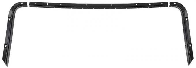 Reproduction of the original stamped steel headliner retaining strips designed for use with 1967-69 Camaro and Firebird models. Each strip is manufactured in quality stamped steel featuring correct mounting locations. Installs around the rear window and secures the headliner and windlace. Features a black EDP coating for rust and corrosion resistance. 3 piece set.