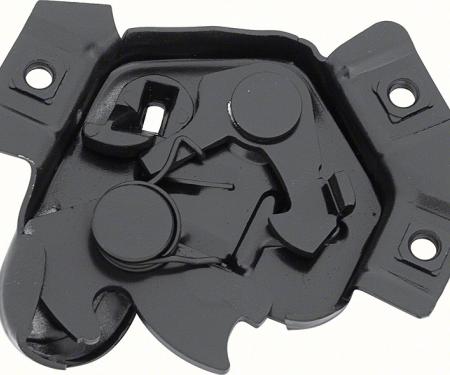 Reproduction of the original trunk lid catch designed for use with 1967-69 Camaro and Firebird models. Manufactured in stamped steel to exact factory specifications. Features correct dimensions and pre-drilled mounting holes. The trunk lid catch mounts to the trunk lid where the latch hooks into.