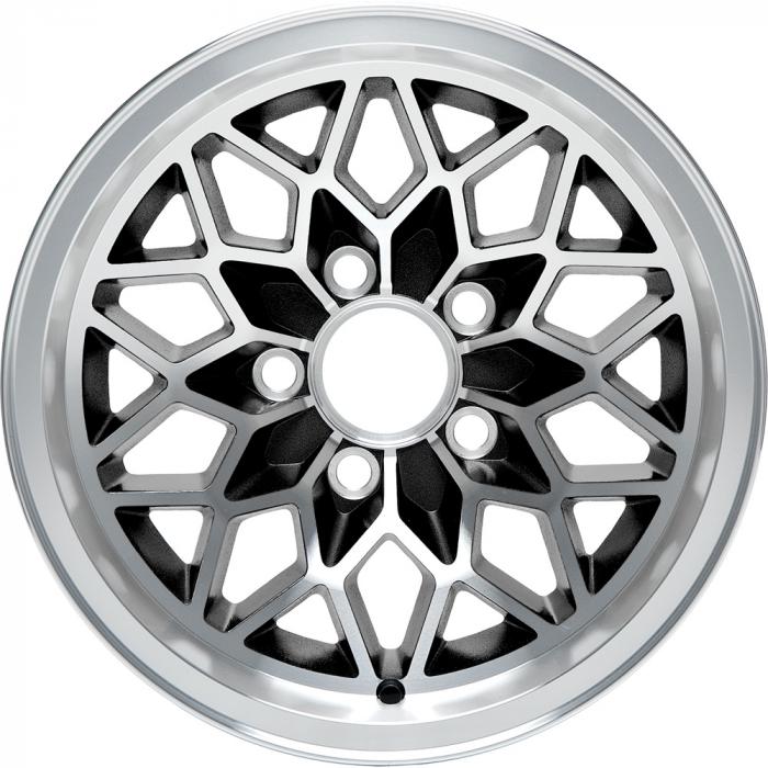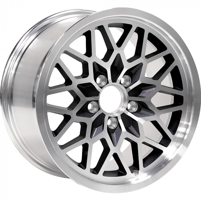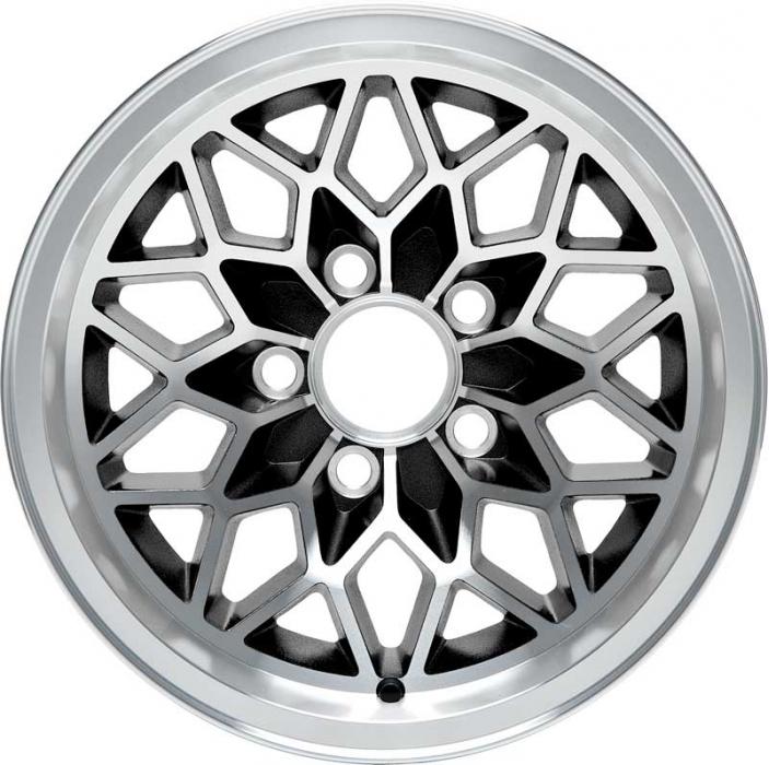 Reproduction of the Pontiac Snowflake aluminum wheel in 17" x 9" format. Each wheel is produced in cast aluminum, painted to closely mimic the original factory color. Specifically developed to fit 1970-81 Firebird and Trans Am models, but may fit other models that accept wheels with 5 x 4-3/4" bolt pattern and 5-1/8" backspacing. Lug nuts and factory style center caps, sold separately. This listing is for one individual wheel.