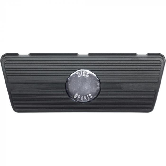 This correct OER® reproduction of the original brake pedal pad is designed for use on various GM models including 1968-70 Camaros equipped with both an automatic trans and disc brakes. The reproduction features the correct design ribbed rubber foot pad along with the chrome "DISC BRAKES" medallion in the center of the pedal pad. Includes the working "Disc Brakes"