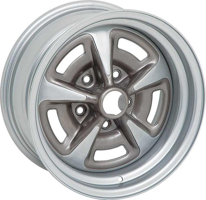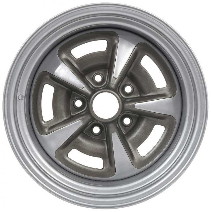 The 60 Series Pontiac Rallye II wheel is one of the most popular Pontiac wheel designs of all time. The Rally II wheel was originally installed on 1967-81 Yenko Camaro models and as an option on 1967-81 Pontiac Firebird / Trans Am models. These wheels also came on Pontiac Grand Prix, Le Mans, Phoenix, Tempest, and Ventura II models. The 15x7" Pontiac Rallye II wheels were used from 1970 all the way to 1981, but the Rally II style first appeared in 1967 in 14" sizes. 60 Series wheels come in either a durable silver powder coat or brilliant show chrome finish with Steel Grey Metallic painted windows. All Rally II wheels can be installed with either drum brakes or disc brakes.