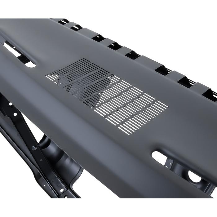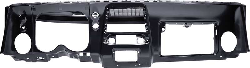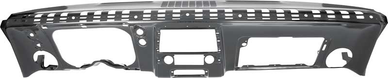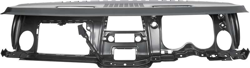 Reproduction of the original dash panel assembly designed for use with 1967 Camaro and Firebird models equipped with factory air conditioning. Each dash panel is manufactured in quality stamped steel to factory specifications, replicating the original design, quality, and fitment. Features strong reinforcements and correctly placed openings for the dash instrument carrier, ash tray, glove box, side air vent, defrost vents, and the center A/C vent when required. Also includes pre-punched holes for the instrument panel molding and dash pad mounting clips. Finished in black EDP coating for rust and corrosion prevention.