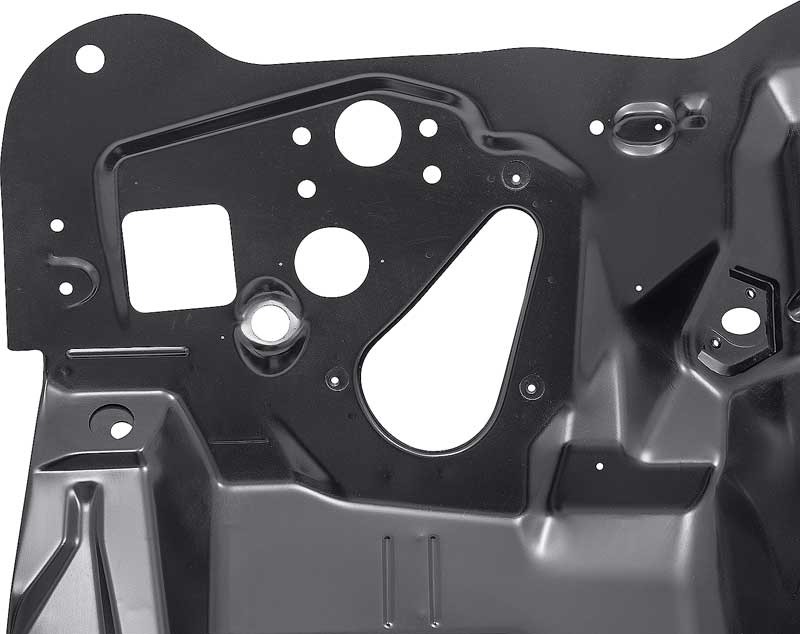 This is a complete reproduction of the original front firewall assembly for 1967 Camaro and Firebird models with factory heater without AC. Most original firewalls have either been drilled or cut or have simply rusted out. This reproduction firewall panel solves the rust problem and features correctly formed and punched holes for the hoses, throttle and speedometer cables and other requirements, for easier installation. This is a one-piece stamped steel reproduction.