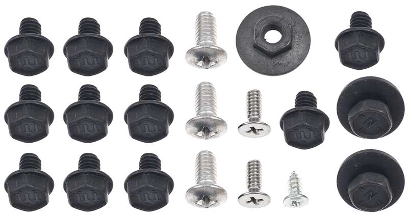 Reproduction inner door hardware mounting set for 1967 Camaro and Firebird models. Includes hardware for door opening mechanism, door latch, window tracks, upper glass sash, inner sash and door opening rod guide bracket. Fits driver or passenger side. One set required per door. 2 required per vehicle.
