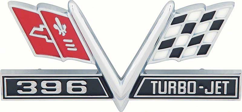 Excellent reproduction of the original "396 Turbo Jet" V-flag emblem emblem found on various 1965-67 Chevrolet models including 1967 SS-396 Camaros and 1965-67 Impala and Full Size models. Each emblem is manufactured in quality die-cast zinc metal to original factory specifications. Features a detailed V-Flag with correctly painted red, white and black accents. Truly the highest quality emblem available! Sold individually. 2 required per vehicle. Mounting hardware included.