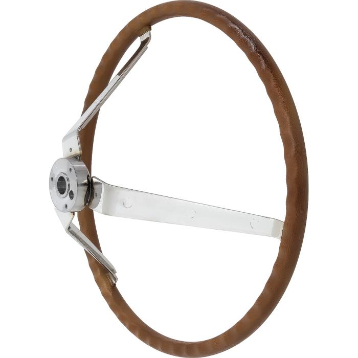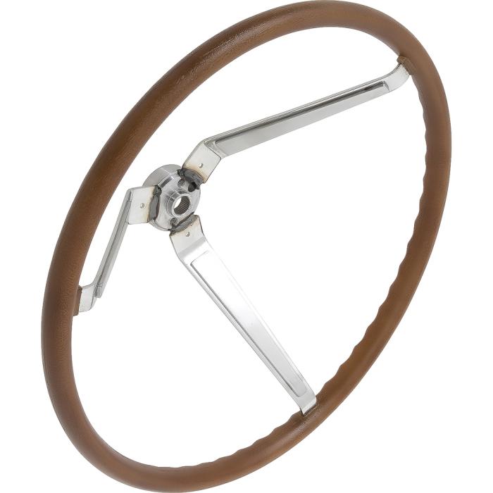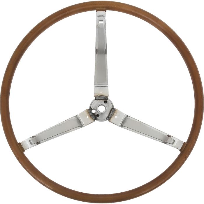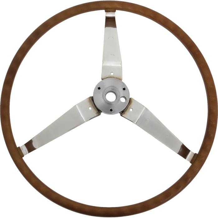 Reproduction of the original style simulated wood steering wheel designed for use with 1967 Pontiac Firebird models. Rach steering wheel is manufactured to correct factory specifications replicating the original wheel in design, appearance, and fitment. Features a deep 3 spoke design with a wood finish outer rim just as original.