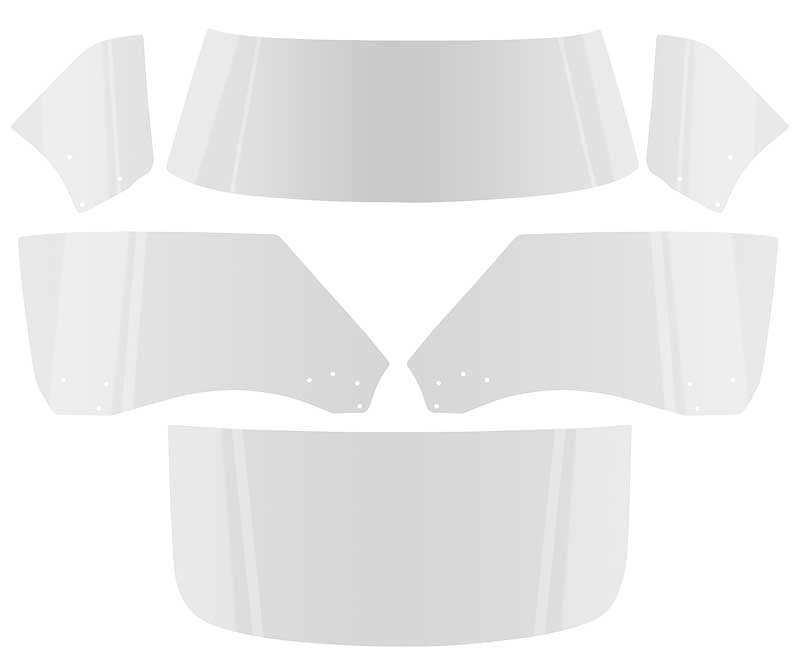 Reproduction glass set for 1968-69 Camaro and Firebird models. Manufactured as an economical way to replace broken, scratched, or delaminating or cloudy original glass on your GM F-Body project car. Features the correct curvature, configuration, shape and size as well as the appropriate mounting holes on the side glass when applicable. Date code or original style markings are not an included feature of this reproduction glass kit.