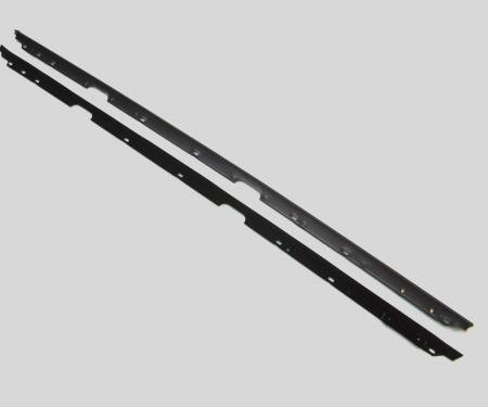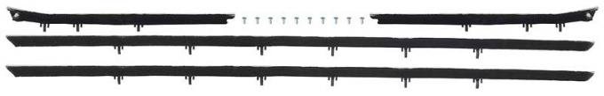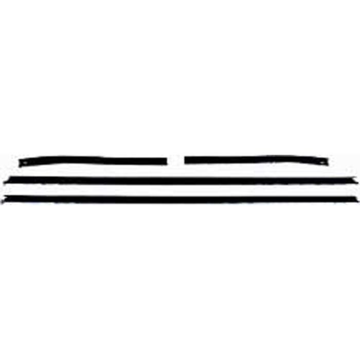 Original-style reproduction of the outer door and quarter window felts for 1968-69 Camaro coupe and Firebird coupe models withOUT the optional door reveal moldings. Features round chrome bead on window felt as original. Includes horizontal outer window strips for front door window and side quarter window and mounting screws for installation.