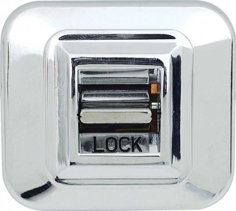 This is a correct reproduction of the original power door lock switch designed for 1968-70 GM models that were originally equipped with power door locks. This switch reads "LOCK" in the correct font and features the proper corners and profile contours. Manufactured in die-cast metal and chrome plated exactly as original.