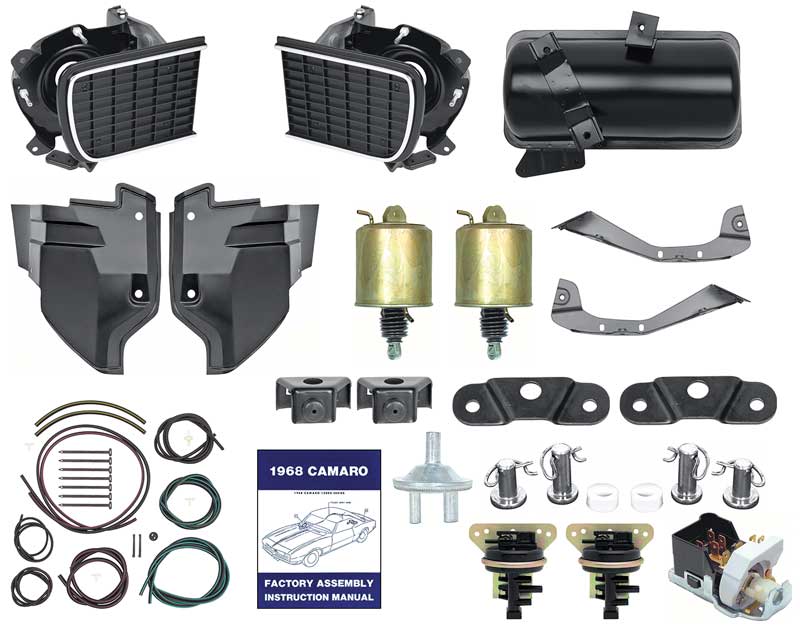 If you're looking to replace all the components for the hidden headlamp system, you came to the right place! We now offer a complete headlamp restoration kit designed for use on 1968 Camaro Rally Sport models (hidden headlamps). This complete kit includes virtually all compnents necessary to replace the door and get them working again. Also includes an assembly manual giving the installer all the information needed to replace the assembly.