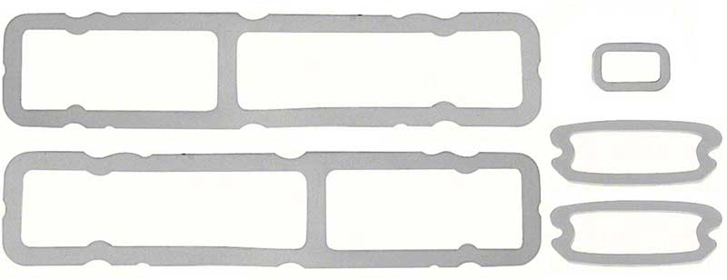 Reproduction of the original exterior gaskets designed to replace the old or worn out originals on 1968 standard Camaros. This replacement gasket set includes both rear tail light lens to housing gaskets, the rear license lamp gasket and the front park lamp gaskets. Recommended when replacing your lenses. Made in the USA!