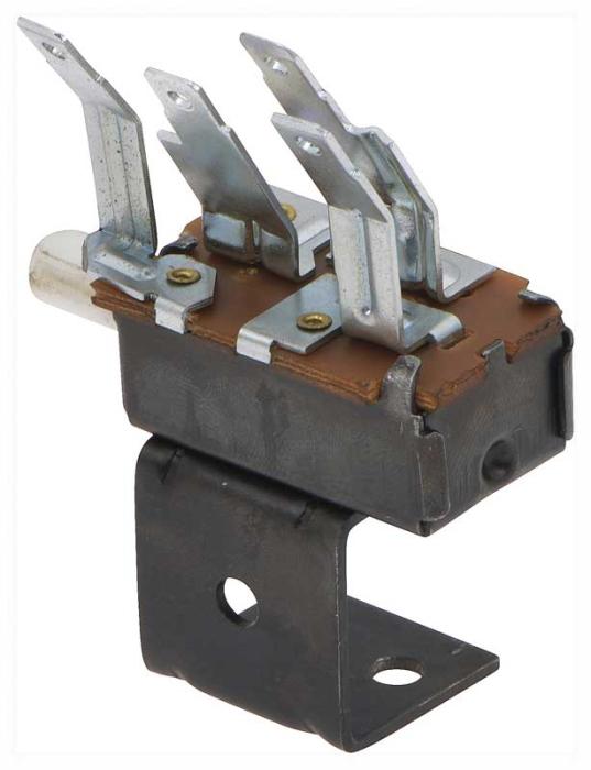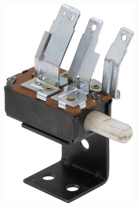 Correct reproduction of the original heater control and air conditioning blower control switch found on 1968 Camaro and Firebird heater control assemblies with air conditioning. Each switch is reproduced to exact specifications and will replace the old or non operating original.