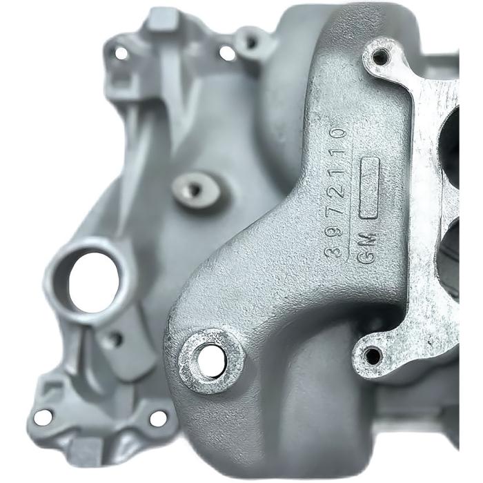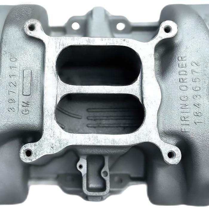 Reproduction of the original aluminum intake manifold designed for 1970 Chevrolet Corvette and Camaro small block models. Each manifold is manufactured to factory specifications featuring the correct # 3972110 casting including the correct firing order. This authentic reproduction also includes the correct Winters foundry Snowflake logo for complete authenticity. Manufactured to function as original. Original equipment for 1970 Camaro Z/28 350ci 360HP and 1970 Corvette 350ci 370HP small bock engines. Will also fit most 1957-86 high performance small block applications.