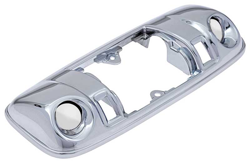 Exact reproduction of the original map / dome lamp housing used on various Buick, Chevrolet, Pontiac, and Oldsmobile models. This housing is made from high quality zinc die-cast material and finished in brilliant chrome plating. Each housing will come complete with clear circular map light lenses and pre-installed retainers for fast installation. Dome lens sold separately (part number # 8780507). The original internal OEM switch plate assembly must be re-used when installed. Sold individually.