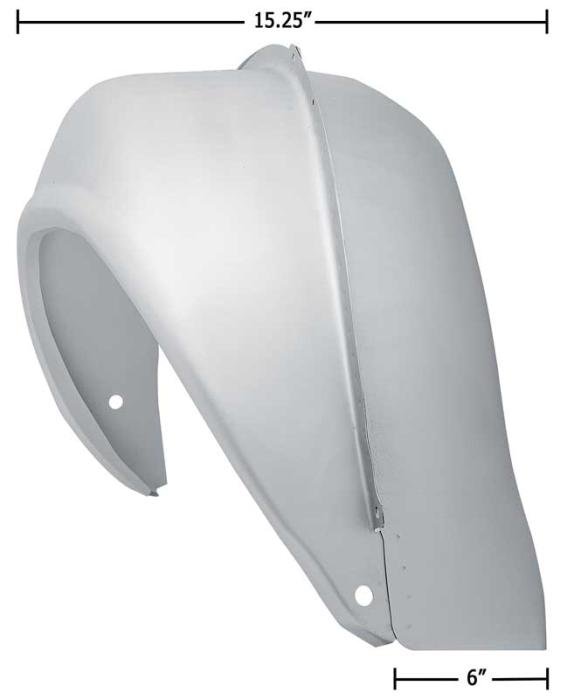 This quality mini-tub rear wheelhouse panel is made to accommodate larger width tires, and designed to replace the entire wheel house assembly, including both the inner and outer wheelhouse panels. This mini-tub measures 6" where the inner wheelhouse meets the seam to the outer wheelhouse, adding the additional width you need to run beefier rear tires without the need to flare the rear quarter panels. Total width at center of tub is 15-1/4" instead of 12-1/2".