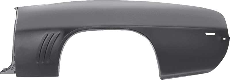 Replacement of the original style quarter panel skin designed for 1969 Camaro coupe and convertible models. Each quarter panel skin is precision-stamped from OE-gauge steel and manufactured to original factory specifications for an authentic appearance and exact fit. This quarter skin replaces approximately 80% of the full rear quarter panel, making it an ideal choice when a full panel replacement is not required. Perfect for repairing rust or damage around the wheel opening, as well as the front or rear lower section of the original quarter. Especially suited for convertible models, or when the upper sail panel section remains in good condition. Each panel features the factory-correct louvered pattern unique to 1969 Camaro models, pre-cut side marker lamp opening, correct mounting holes, flanges, and the complete door jamb area for a precise restoration.