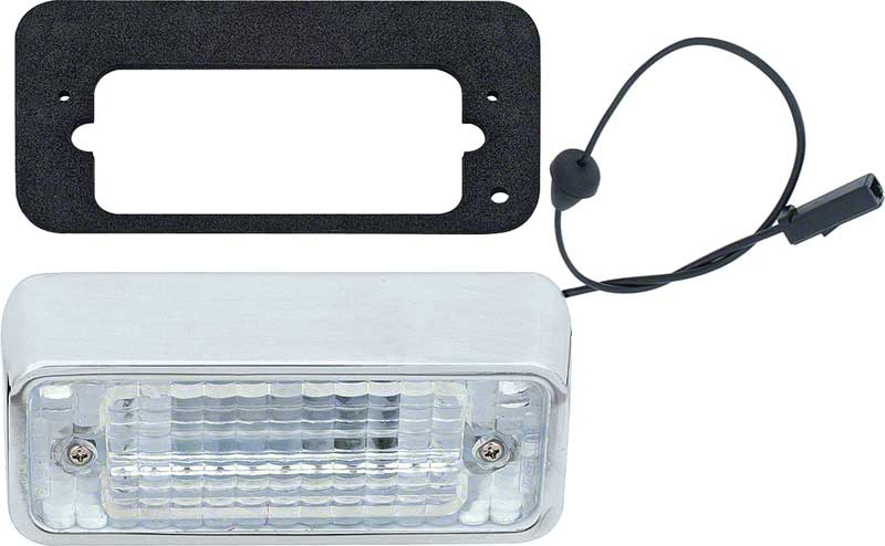 Reproduction of the complete back up lamp assembly designed for use on 1969 Rally Sport Camaro models. Manufactured to factory specifications including correct chrome housing, housing to body gasket, lens, lens gasket, bulb, socket with 8" lead wire along with the original type molded rubber boot. For use on LH drivers side.