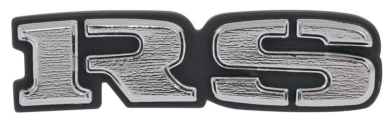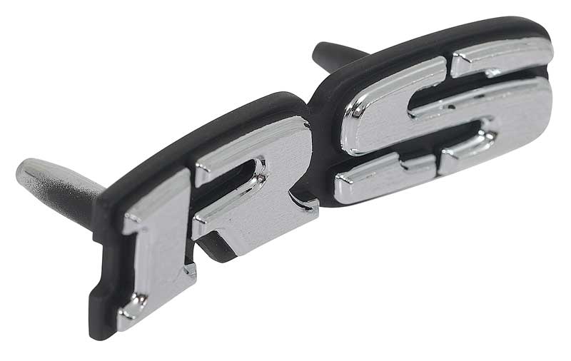 Reproduction of the original "RS" steering shroud emblem designed for use with 1969 Camaro RS models. This emblem is manufactured in die-cast zinc and features the correct "RS", stencil style silver lettering in the original grain, die-cut to the exact dimensions. Features 2 mounting studs for installation onto the steering wheel shroud.