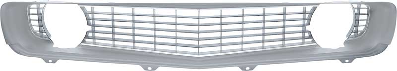 Reproduction of the original front grill assembly designed specifically for use with 1969 standard Camaro models without the RS option (hidden headlamps). Each grill is manufactured in injection-molded ABS replicating the original design, appearance, and fitment. When authenticity is important to your project, this grill delivers! Manufactured in the original argent silver color that matches the OE production grill. Also includes reproduction egg crate trim moldings pre-installed on each grill. Ready to install!