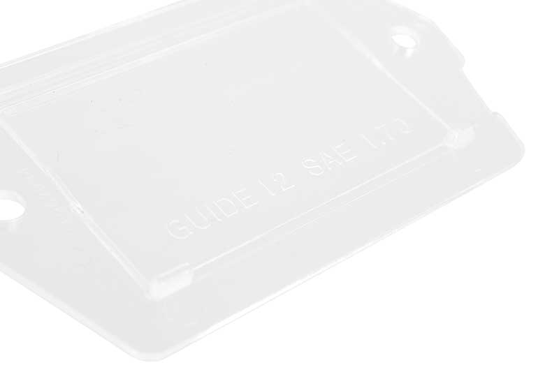 Quality reproduction license lamp lens and gasket for 1970-73 Camaro models. Each lens is injection molded and manufactured to exact specifications. Features factory correct SAE and "Guide" markings for authenticity. Comes with lens and gasket. Sold individually. 2 required per vehicle.