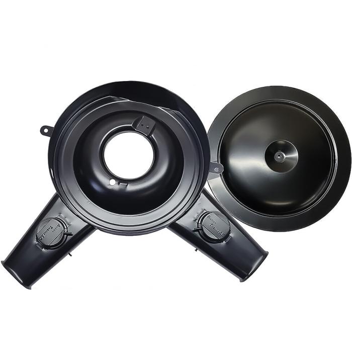 Reproduction dual snorkel air cleaner with one heat stove diaphragm valve for 1970-73 Trans Am or 1973-74 GTO, Lemans with Ram Air III, HO 400 or 455 engine. Features correct domed air cleaner lid.