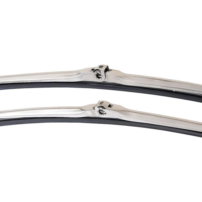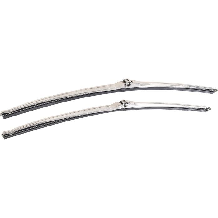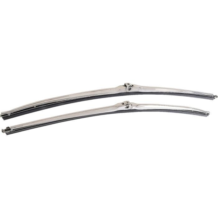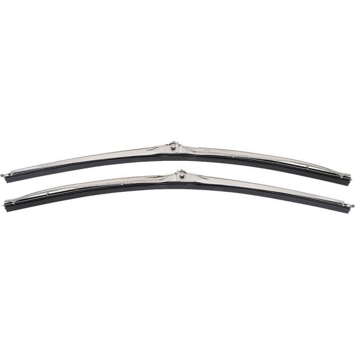 Reproduction of the original wiper blade units designed for use on 1970-1981 Camaro models with recessed style wipers and a wide variety of other makes and models. Manufactured in the correct design featuring the blade and rubber wiper. Sold in pairs. Constructed in stainless steel with a satin finish for long-lasting dependability. Measures 18" in length.