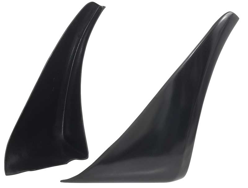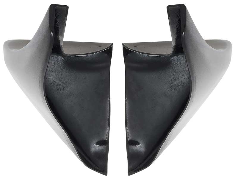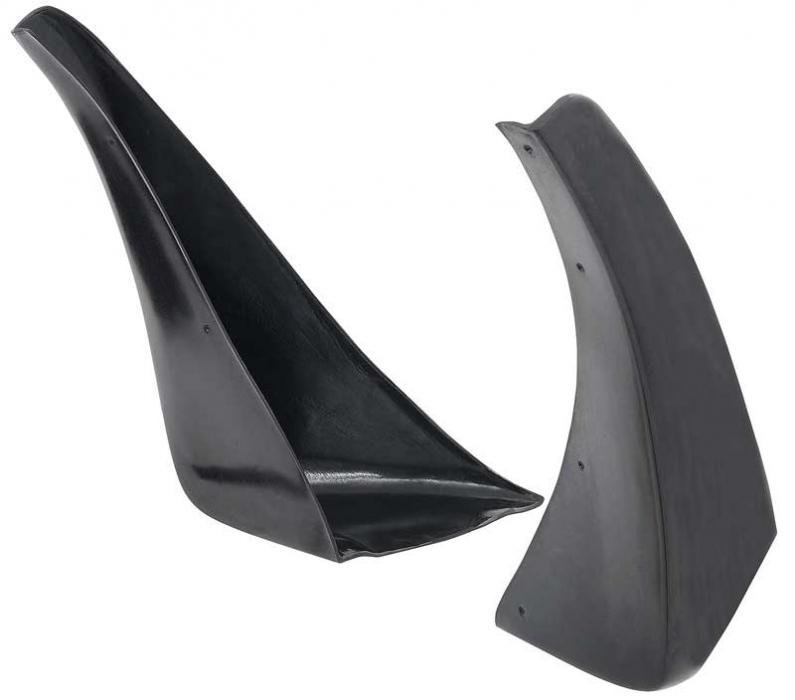 Add front splash guards to any 1970-81 Camaro to protect against stone chips, water splash and other flying debris. These aftermarket guards are manufactured in quality automotive-grade urethane and designed to match the style and shape of the 1978-81 Camaro Z-28 factory front and rear side spoilers. Although splash guards were never available from the factory, once installed, you'll swear they look like original equipment. Mounts behind the front wheel with provided hardware. Some drilling of fenders is required for installation. These look great on base model Camaros, or on Z-28 models regardless of whether or not the car is equipped with factory style Z-28 spoilers.