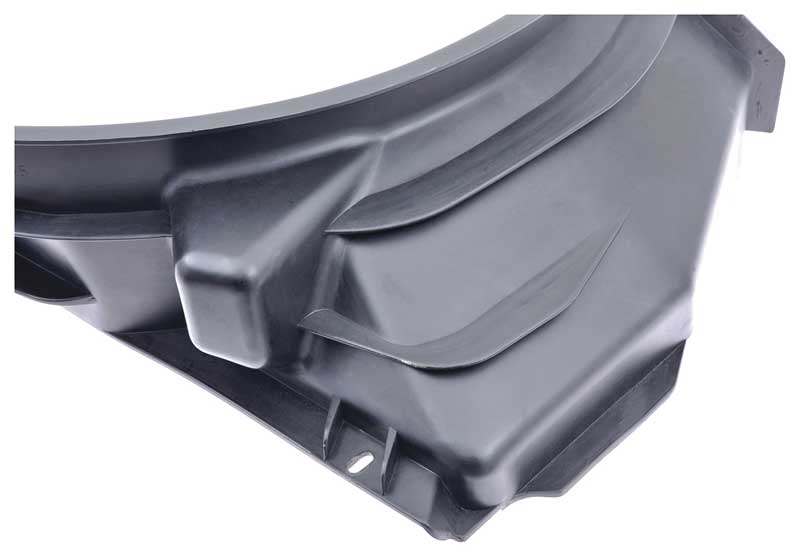 Reproduction of the original radiator fan shroud for 1971-77 Chevrolet models with small block engines. Fan shrouds are manufactured with pressure-injected ABS plastic to ensure that each shroud meets or exceeds OEM specifications. Replaces OE #3986905, 6261917. Shipped oversize.
