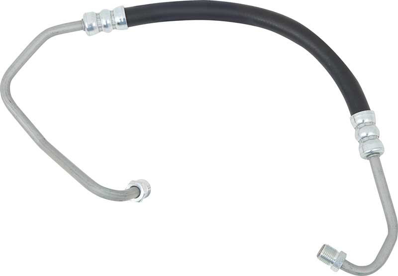 Reproduction of the original power steering pressure hose for use with various 1970-76 Buick, Chevrolet, Oldsmobile, and Pontiac models. Each hose is manufactured to specific factory dimensions replicating the original in design, contours, and fitment. A leak in your power steering system can make a mess of your engine compartment, your driveway and garage floor. You can also burn up your power steering pump by driving your classic when it is low on fluid. The pressure hose connects from the power steering pump to the steering gear box inlet.