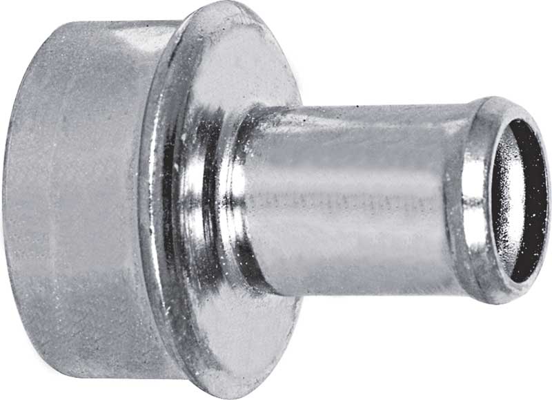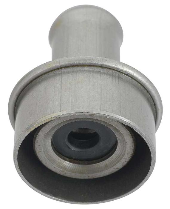 Reproduction of the original heater hose to cylinder head fitting designed for various 1972-81 Pontiac models. Fitting presses into the rear of the passenger side cylinder head and features a tapered edge for more convenient installation. This fitting is the later style 2nd design manufactured in stamped steel that uses a rubber-o-ring restrictor unlike the earlier variable spring-type restrictor used on 1967-71 models. Replaces OE part number # 499744.