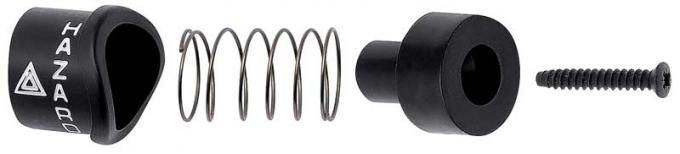 Reproduction hazard knob set found on a wide variety of 1967-05 GM models. Each set includes a knob, release collar, tension spring, and screw. Manufactured in black injection molded ABS, the release collar features the word "Hazard" vertically beside a triangular hazard icon painted in accenting white paint as original. Convenient set includes all part needed for a complete replacement.