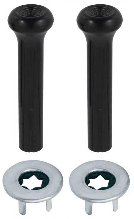 1973-88 GM, Door Lock Knob Kit, Plastic, Smooth Black Knobs, With Wide Ferrules