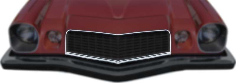 Reproduction of the upper and lower molding that attaches to the header panel to surround the grill on 1974-77 Type LT models. Each molding is manufactured from stamped aluminum to exact OEM specifications. Includes upper and lower moldings. OEM part number # 6260912 (Lower), # 344423 (Upper). Features a bright polished finish.